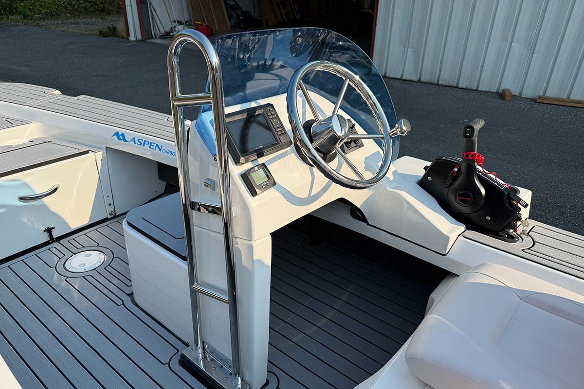 The T13C is the flagship of the durable and dry riding Carbon Cat line. The Console has comfortable twin seats, wheel steering, easy access to throttles and a windshield. There is storage forward of the console and in the forepeak. The T13C is fast versatile and fun to drive. The seated console driving position improves visibility and maintains balance while cruising, docking and boarding.